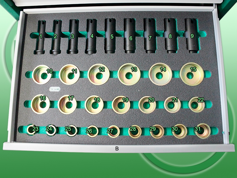 4 / 5 / 6 / 7 / 8 / 9 / 10 / 11 / 12 - Adaptery ściągacza tulei tylnej osi VW / AUDI / SEAT produkowane po 2004 roku